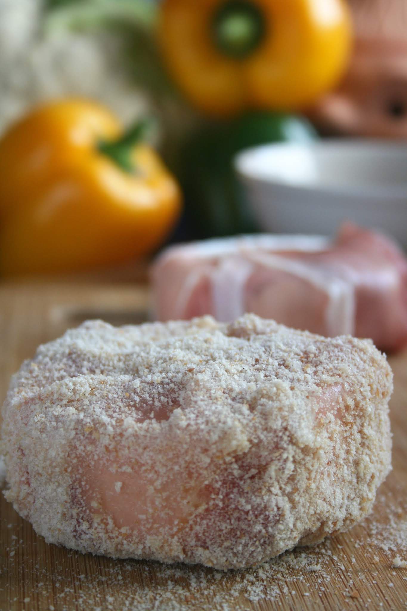 Każdy krążek sera obwijam pięcioma plastrami szynki. Tak przygotowany ser panieruję w jajku i bułce tartej, po czym smażę na średnio rozgrzanym oleju na złoto - po kilka minut z obu stron (smażę też brzegi, ustawiając na nich krążki sera).